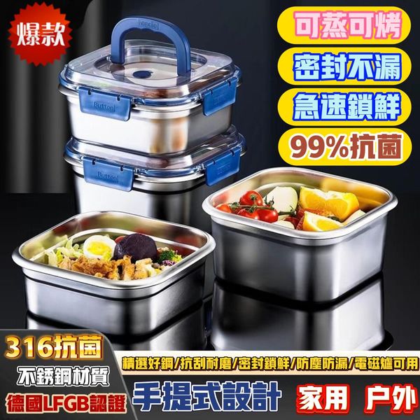 【限時搶購】新款食品級316不鏽鋼保鮮盒!手提式不鏽鋼保鮮盒,2500ml大容量!健康安全無異味!大號野餐便攜盒!