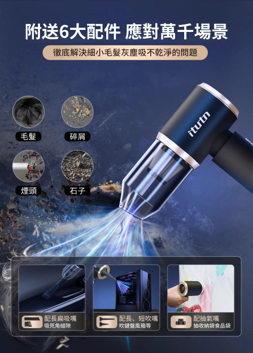 【限時搶購 】【鎮店之寶】家用車載無線 車載 居家兩用 抽氣泵+吸塵+吹塵,三合一的無綫吸塵器 ✅12000pa超强吸力,灰塵/毛髮輕鬆吸入 吸力強勁:高效清除車內灰塵、細顆粒及寵物毛髮,讓車內煥然一新 可充電設計:內建大容量電池,無線使用 清潔汽車的各個角落,包括座椅縫隙、中控台、門袋等。