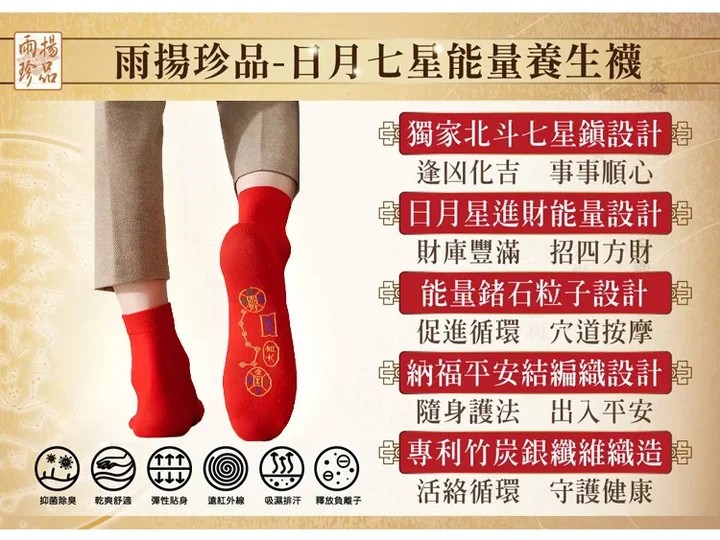 爆棚新年限定送福利‼ ️一組五双❗️正品【轉運七星襪】買二送二✨999到手20双! ✅襪身是純正的紅色,可以本命年穿! ✅氛圍感拉滿!轉運腳踏七星 ✅新年鴻運襪好運暴擊,順風又順水! 今年最與眾不同的新年襪✨過年就要穿點不一樣的, 據說穿上大紅襪過新年可以致富!!