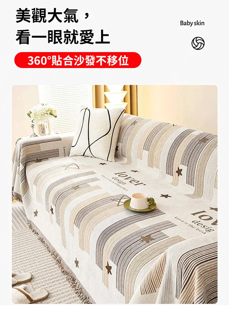 【限時搶購】四季通用雪尼爾羊絨棉的沙發蓋巾,雙面可用可水洗,再也不用量尺寸了,直接簡單鋪好