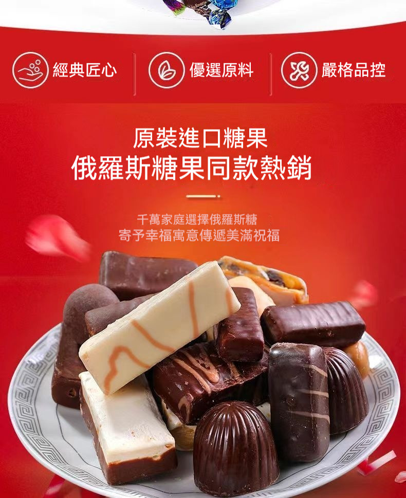 0添加!俄羅斯進口混合糖果,巧克力威化夾心超好吃~大人小孩都愛!孕婦、糖尿病友也能安心享用!完美喜糖、年貨禮盒首選~低利潤促銷中,手刀搶購~ 滿滿幸福味~